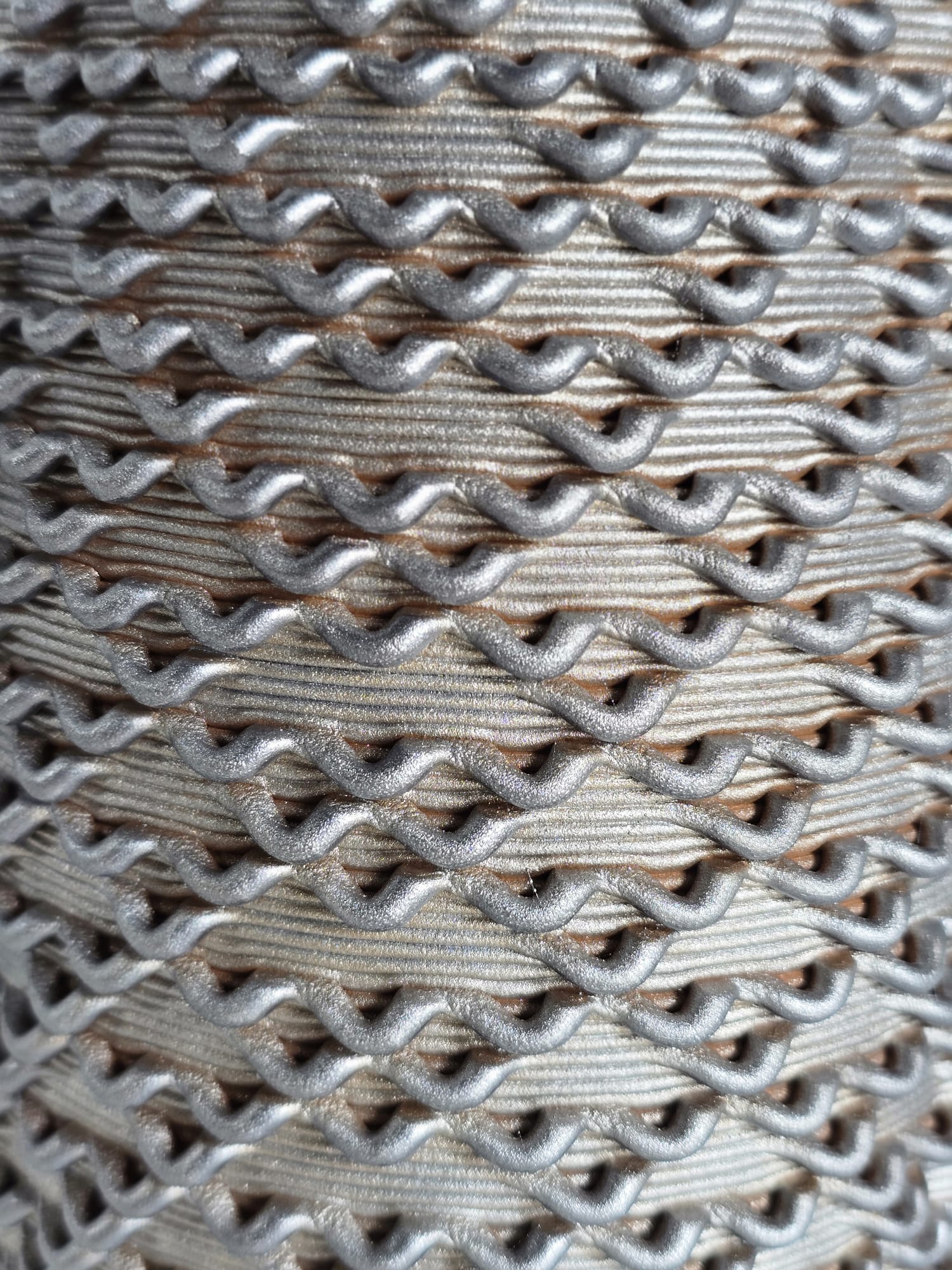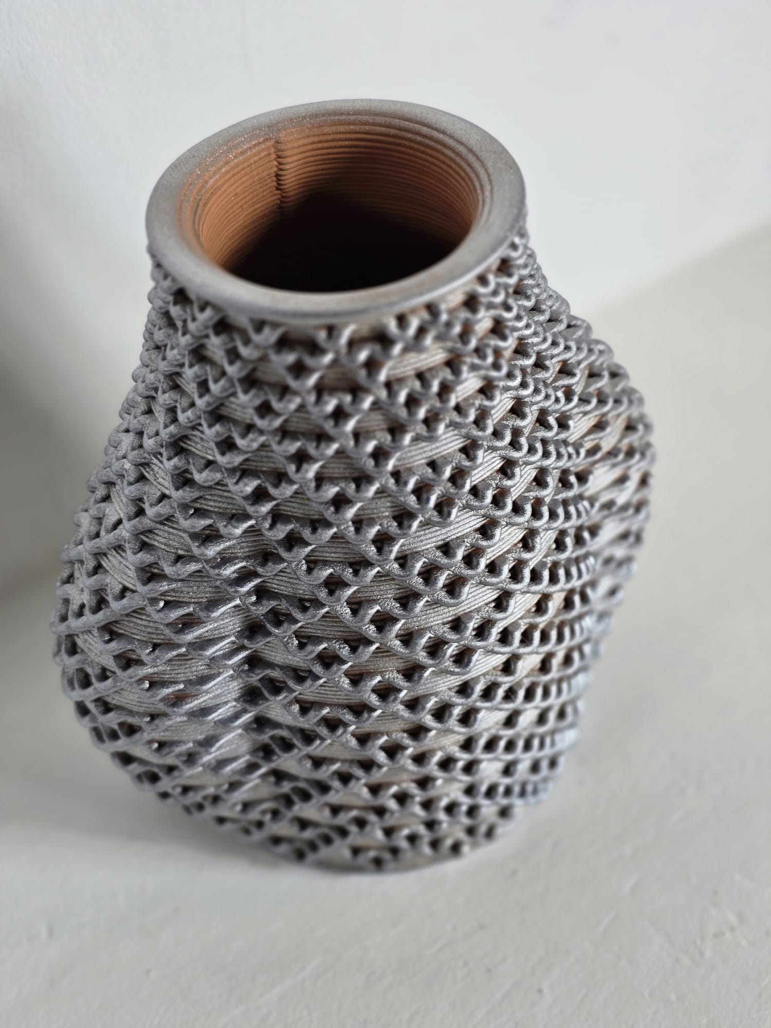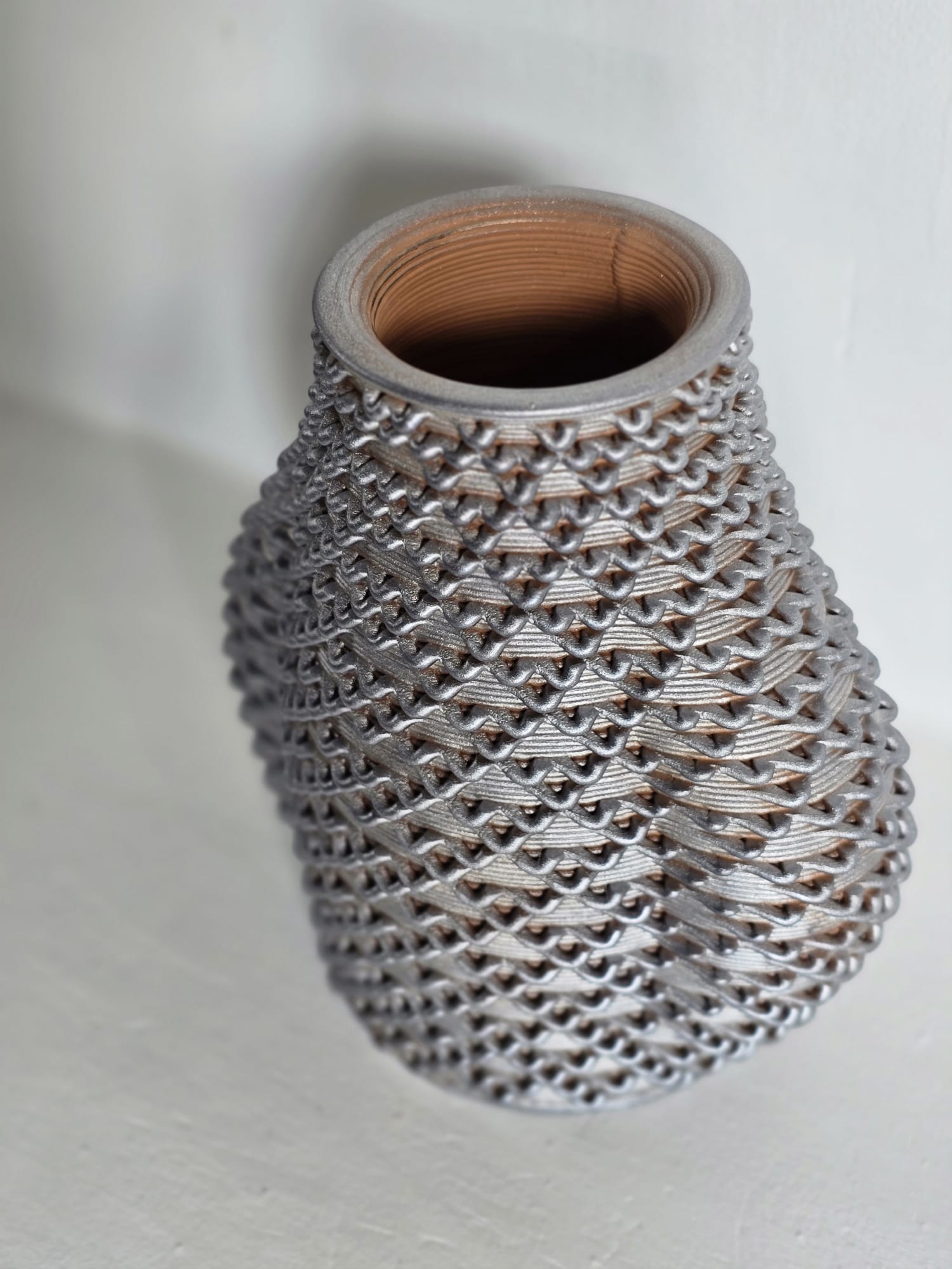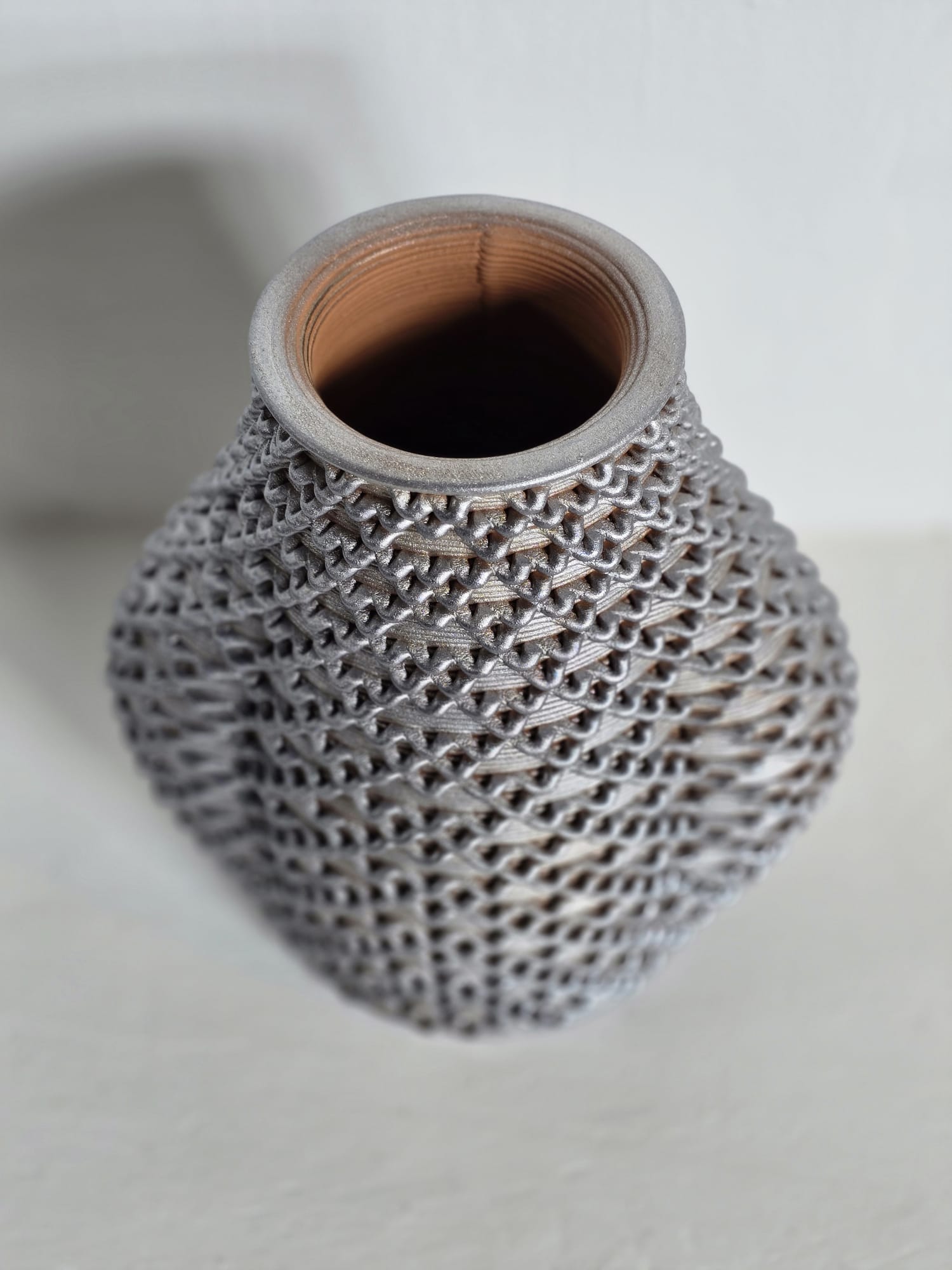Realizată din lut roșu printat 3D, piesa este acoperită la exterior cu vopsea industrială argintie și tratată la interior cu rășină transparentă pentru rezistență. Fundul este ștanțat cu logo Thomsa, marcă a autenticității și calității Studio Scale.