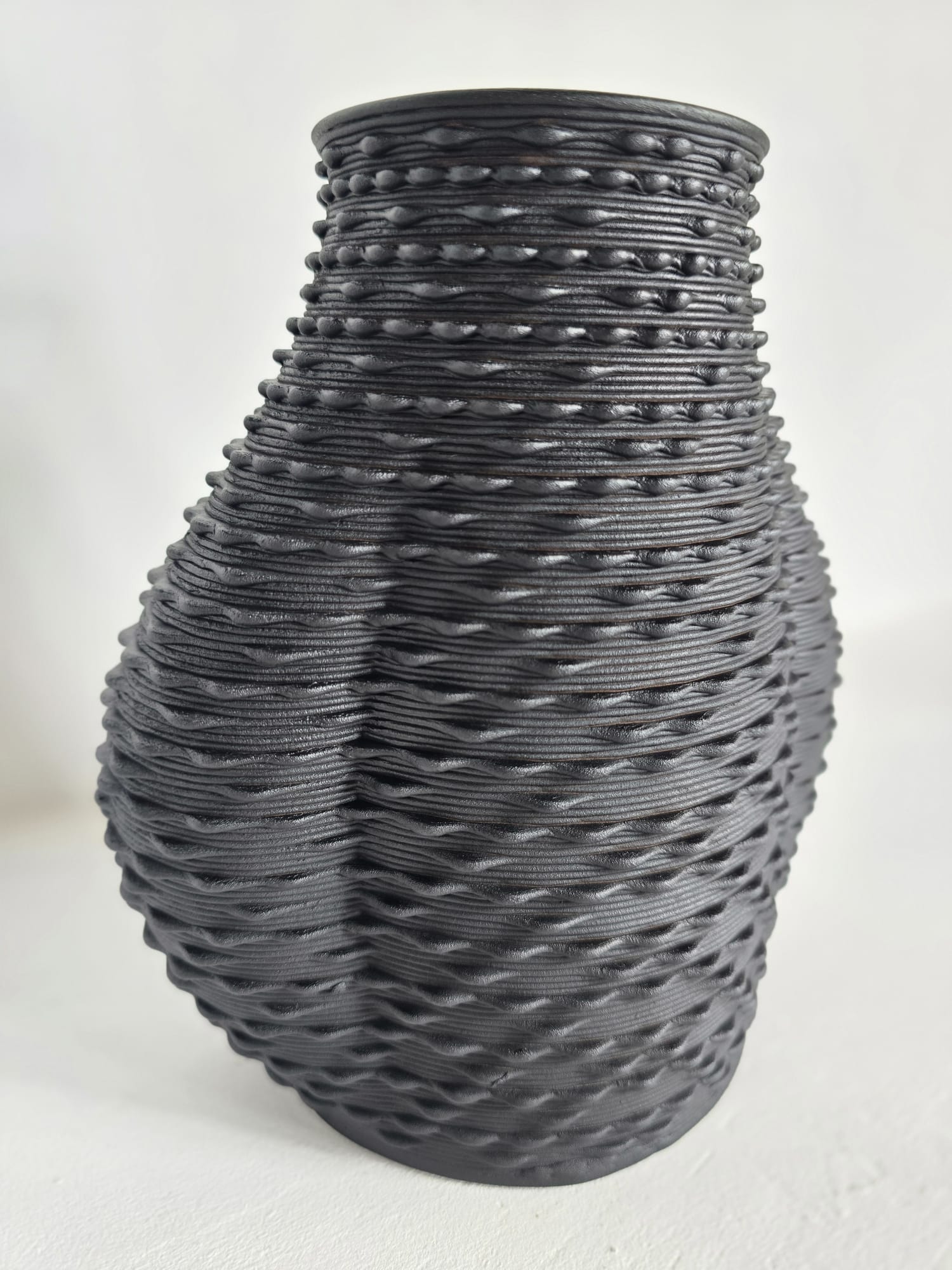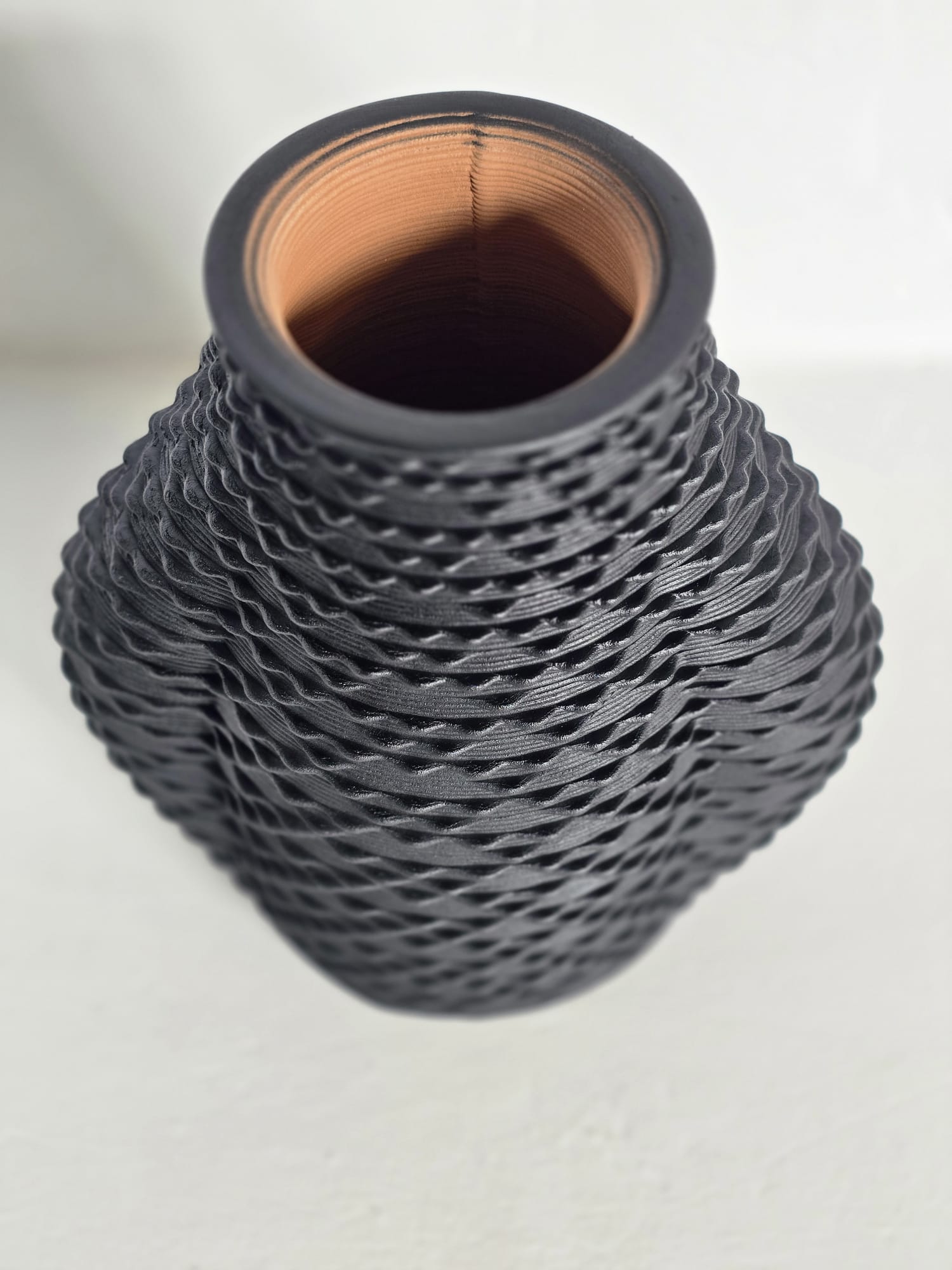„Orbit // Obsidian” este expresia puterii și sobrietății în colecția Orbit. Textura parametrică orbitală, generată digital, se dezvăluie subtil prin finisajul negru mat, care absoarbe lumina și evidențiază liniile volumetrice.
