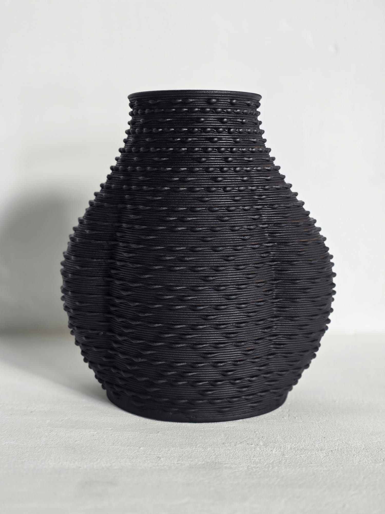 Realizată din lut roșu printat 3D, piesa este finisată la exterior cu vopsea industrială negru mat, iar interiorul este tratat cu rășină transparentă pentru rezistență și funcționalitate. Fundul ștanțat cu logo Thomsa garantează apartenența la gama Studio Scale.