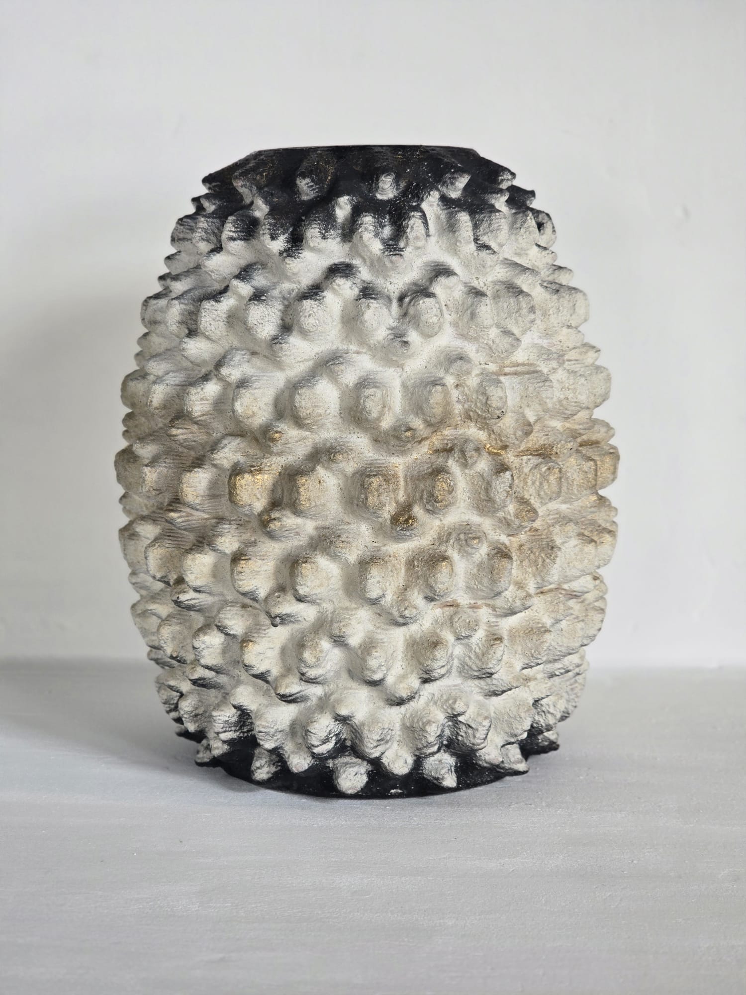 Este o piesă tactilă și vizuală în același timp, ideală ca obiect sculptural de accent în interioare contemporane. Fiecare piesă este unicat în patina sa metalică, aplicată manual, dar păstrează integritatea seriei.